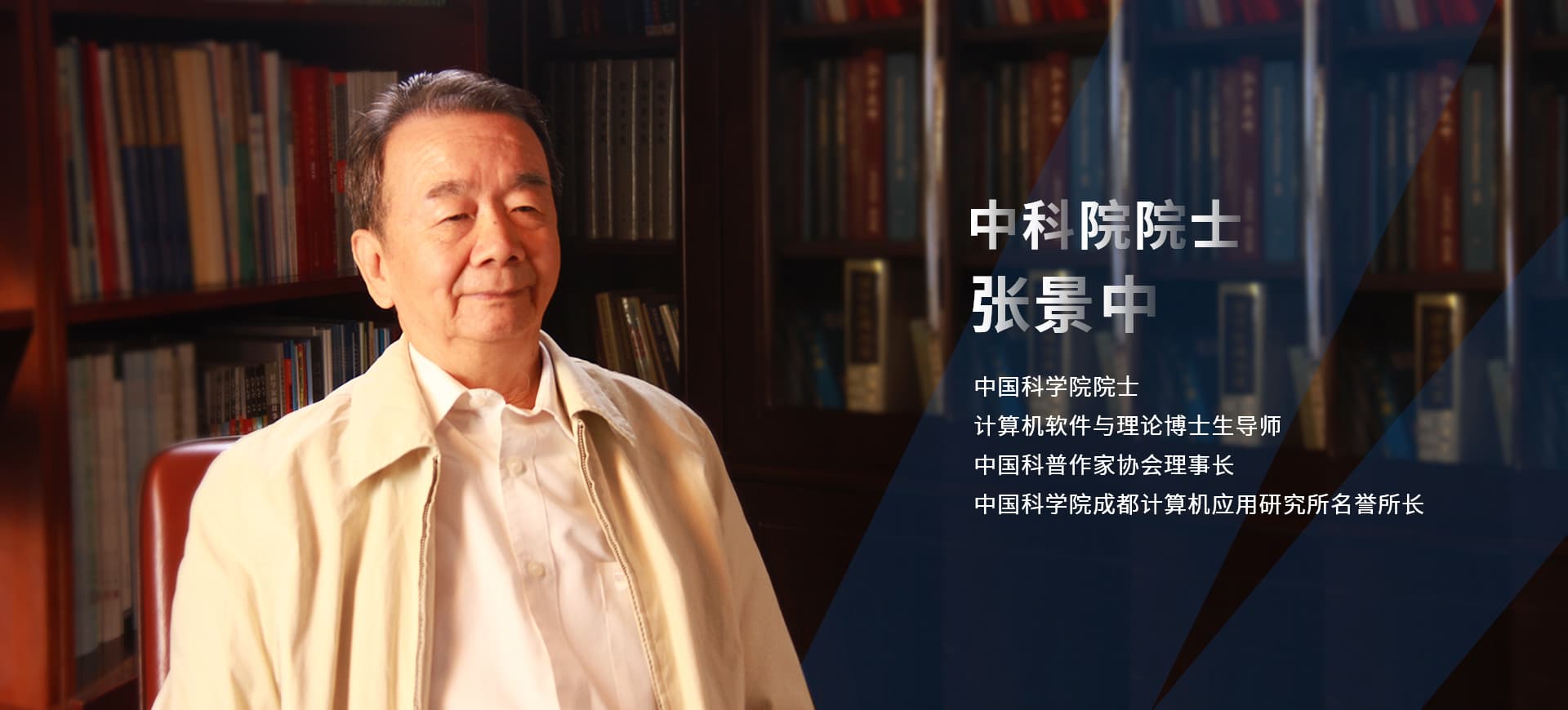 張景中,中國科學院院士,1959年畢業于北京大學數學力學系。從事計算機科學、數學和數學教育研究?!队嬎銠C應用》期刊主編。在機器證明、教育數學、距離幾何及動力系統等領域有貢獻。其成果1982年獲國家發明獎二等獎,1995年獲中科院自然科學獎一等獎和中國圖書獎,1997年獲國家自然科學獎二等獎,2003年獲全國科普創作獎一等獎、五個一工程獎和國家圖書獎,2005年和2009年兩次獲國家科技進步獎二等獎。他提出了三角、幾何、代數相互滲透的初等數學教學體系;提出了非ε語言的極限概念表述和實數理論的連續歸納法;發現了不用極限或無窮小建立微積分的基本理論和方法。